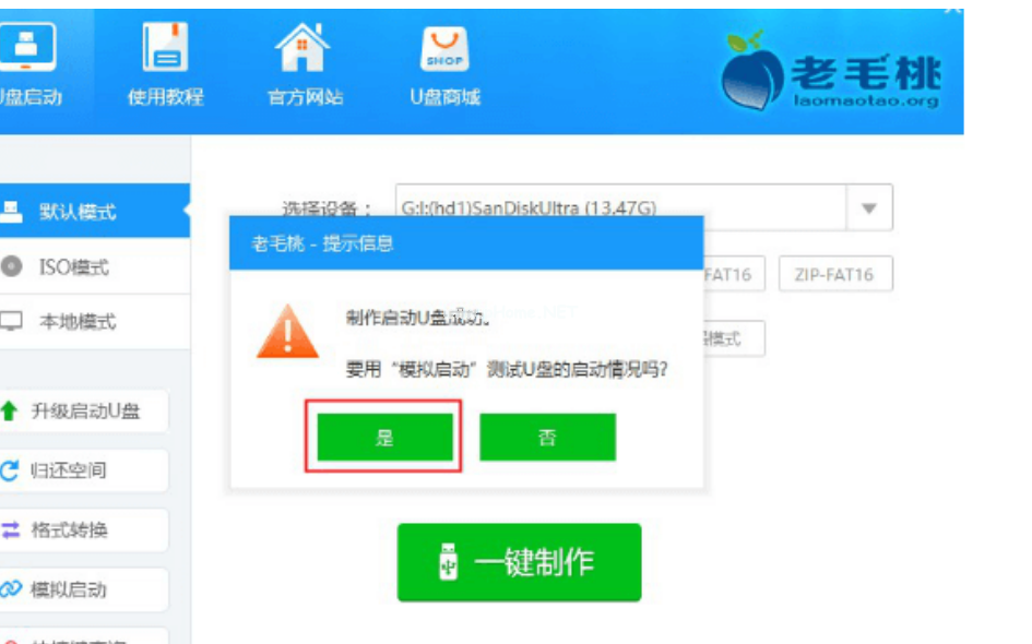5. 操作簡(jiǎn)單:老毛桃U盤裝機(jī)工具的操作非常簡(jiǎn)單,用戶只需要按照軟件提示進(jìn)行操作即可。